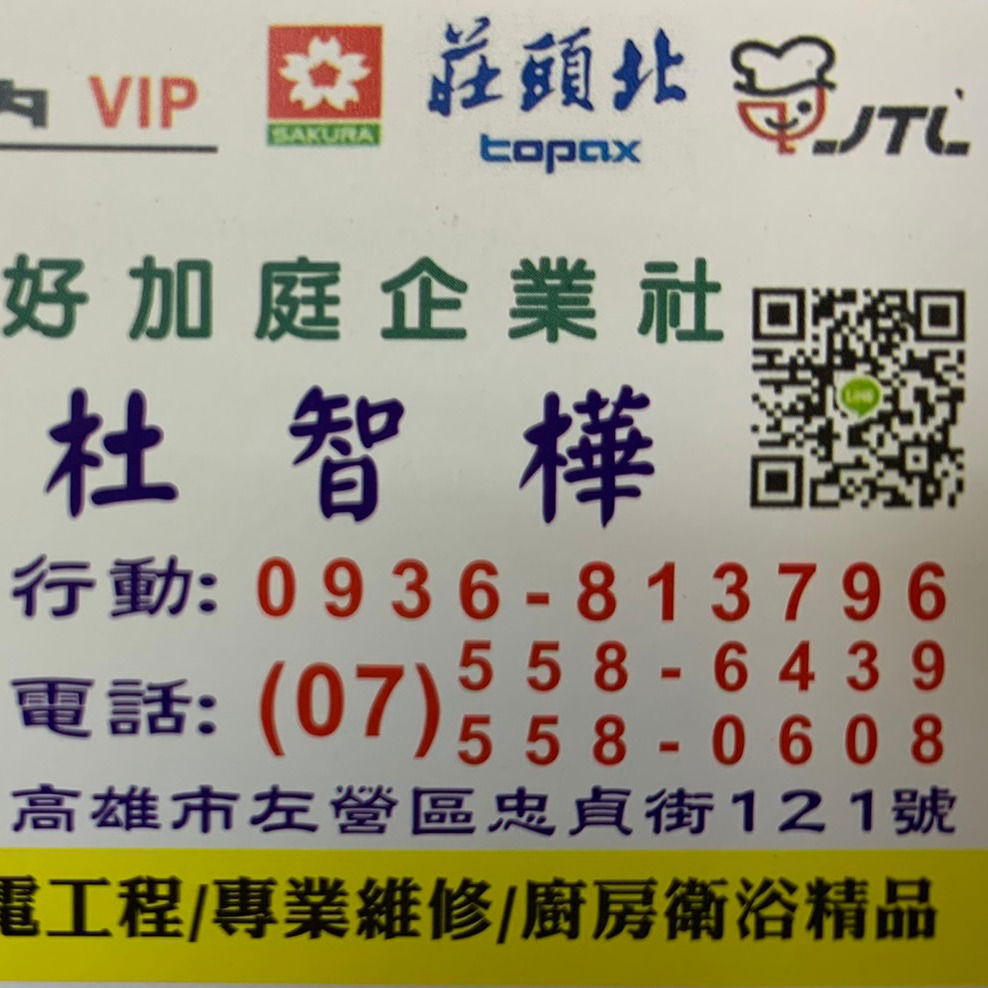好加庭水電廚具專賣店 專賣林內、櫻花、莊頭北、豪山、喜特麗、康寶、和成 · 813高雄市左營區忠貞街121號